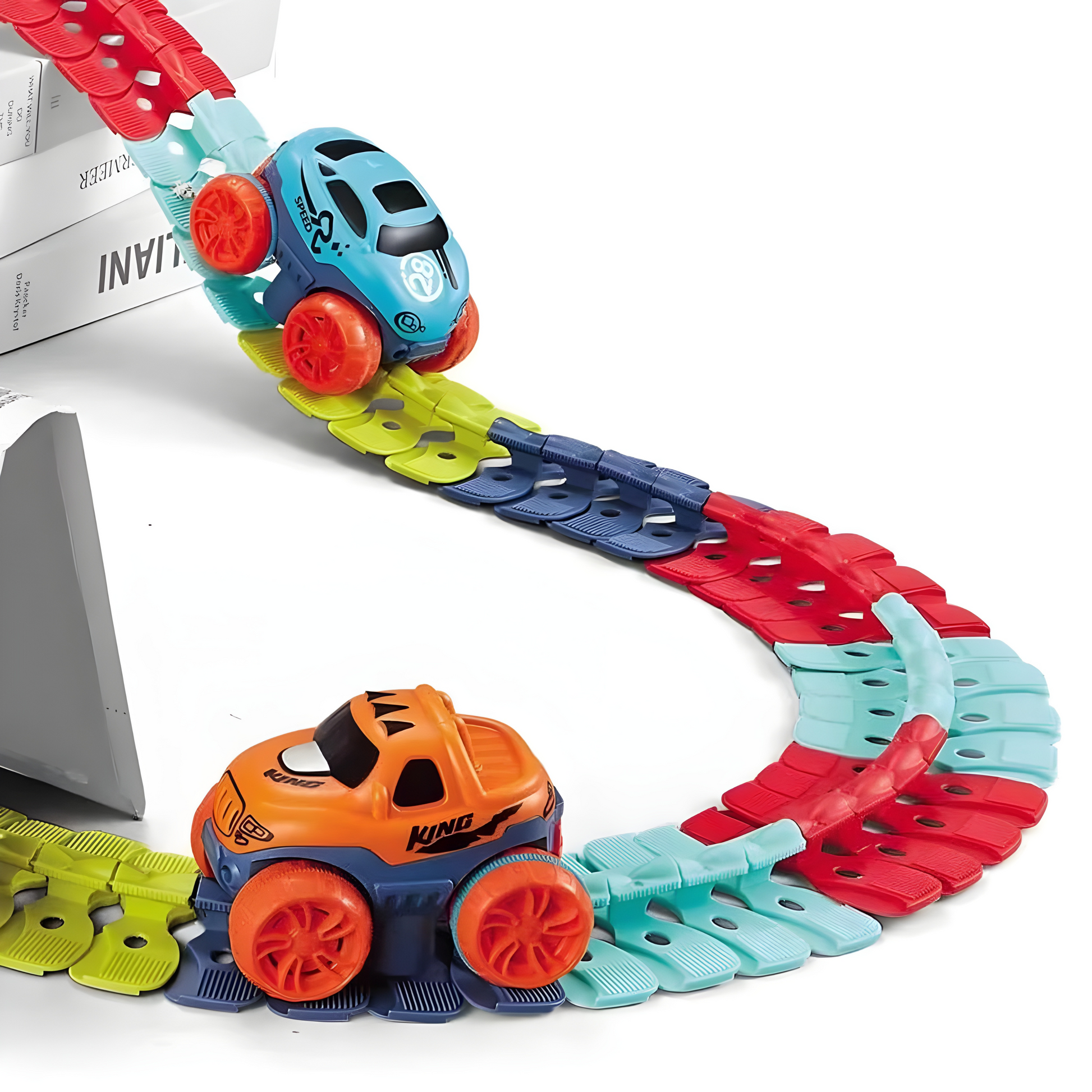 Ranging from 46 to 184 flexible pieces, kids can design and redesign tracks endlessly from loops to twists, with our Changeable Race Track Set.