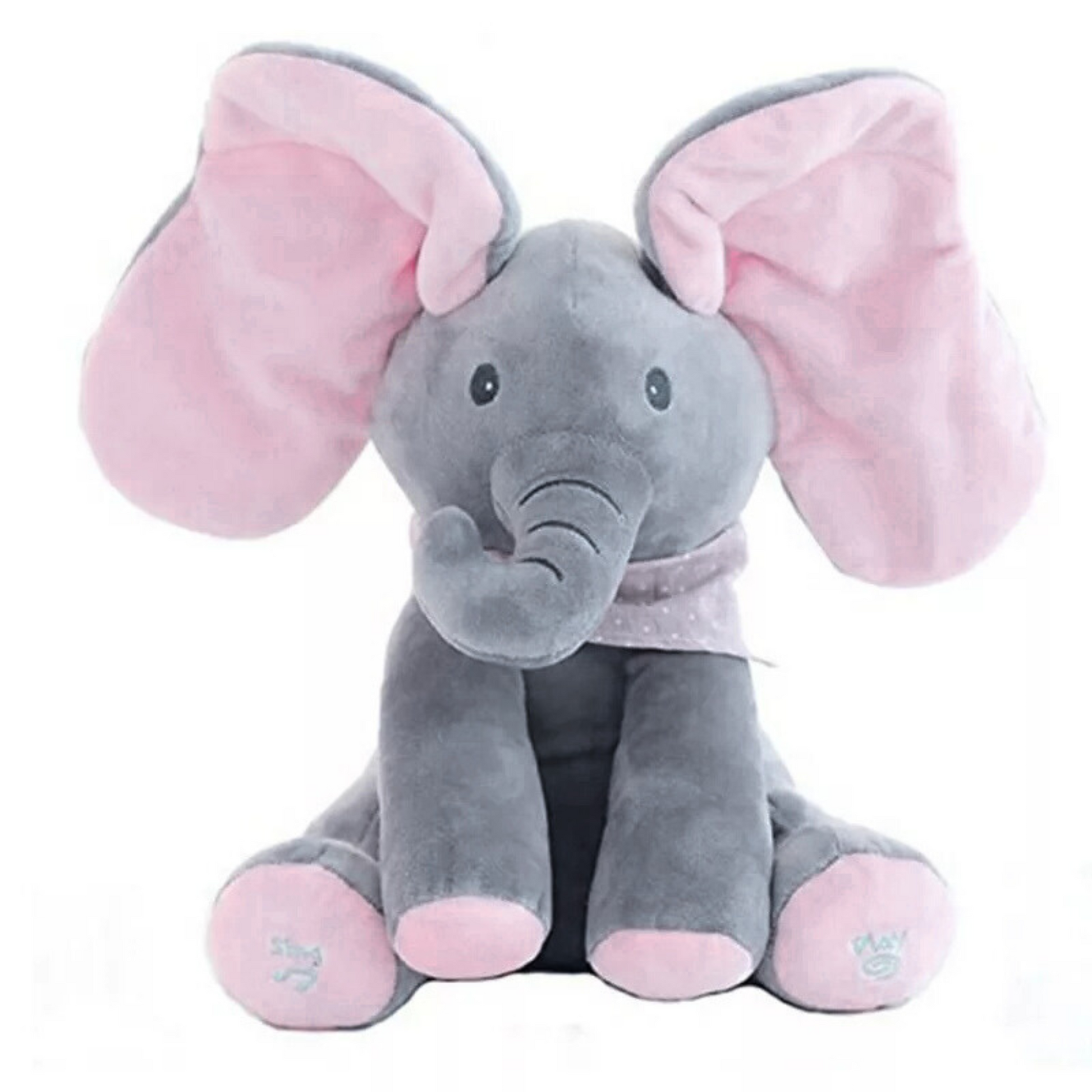 With a press of his paw, this charming elephant comes to life, flapping his ears and speaking in a cheerful, playful voice to engage in a delightful game of peek-a-boo.